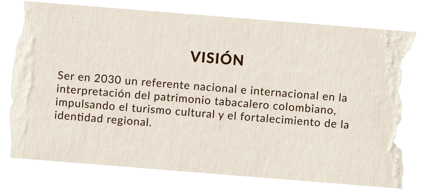 Es ser un espacio vivo donde la historia, la cultura y la comunidad se encuentran para mantener viva la memoria tabacalera de los Montes de María. A través de la educación, la tecnología y las experiencias sensoriales, buscamos honrar el legado campesino, fortalecer la identidad local y generar nuevas oportunidades culturales y económicas para las generaciones presentes y futuras.